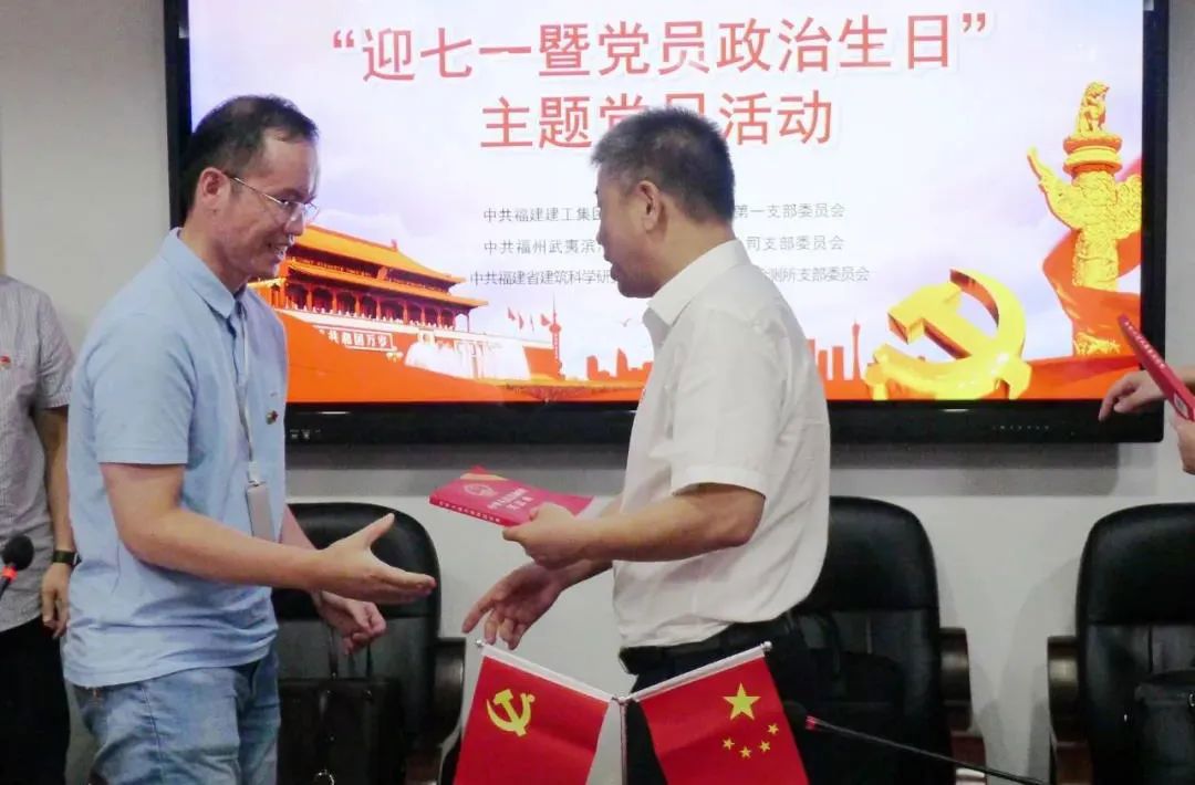 为庆祝中国共产党成立99周年,近日,福建建工集团总部第一党支部、武夷滨海党支部和省建科院公司结构检测所党支部联合开展“迎七一暨党员政治生日”主题党日活动。