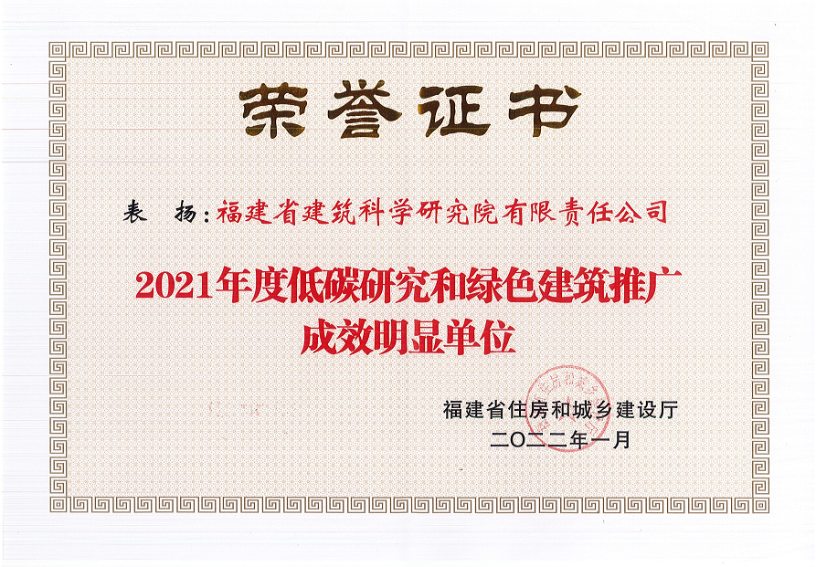 近日,福建省住房和城乡建设厅召开全省住房和城乡建设工作视频会议,会上通报表扬了2021年度住建行业多个先进典型项目及单位。中文无码 有限责任公司喜获“2021年度低碳研究和绿色建筑推广成效明显单位”荣誉称号。