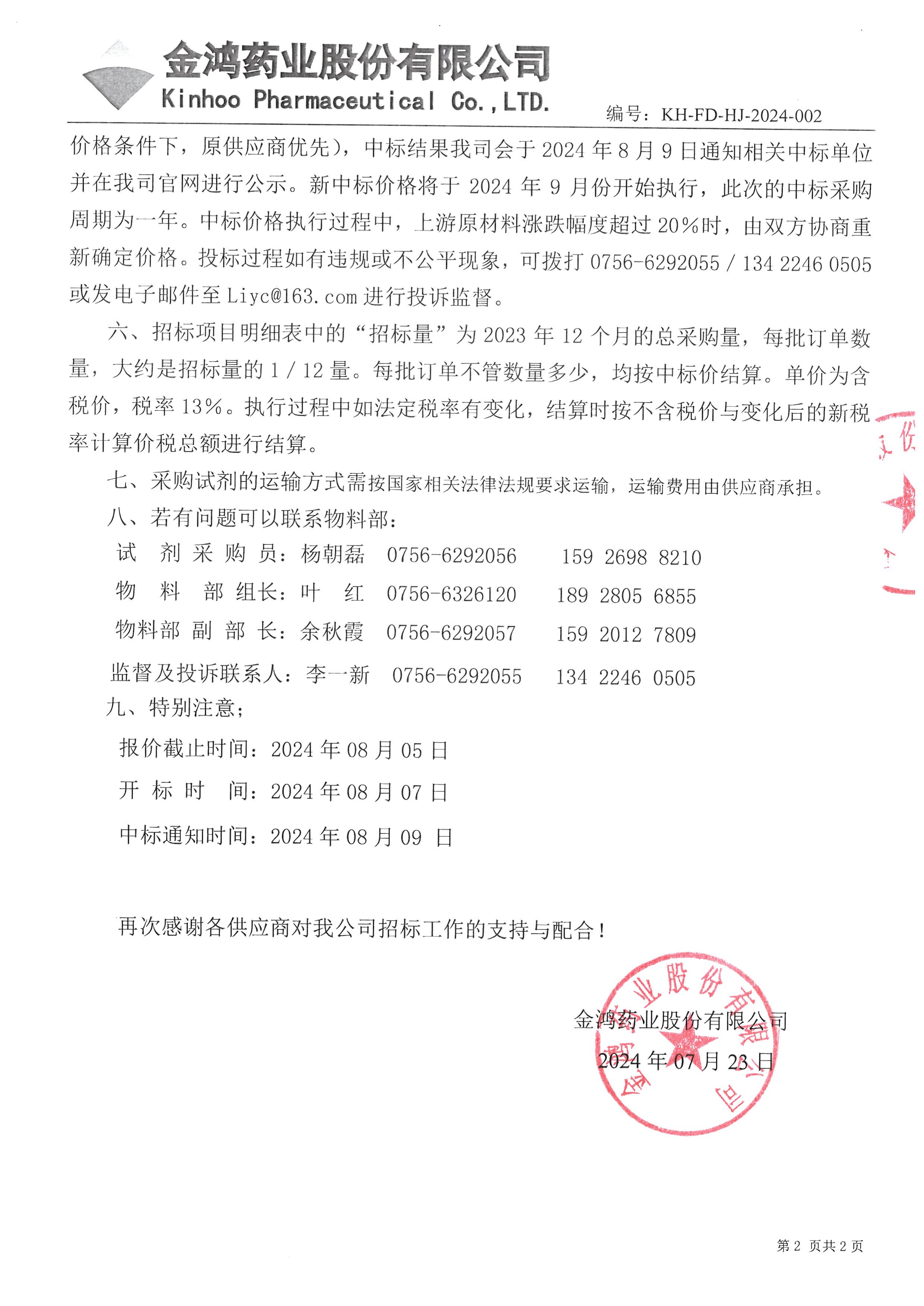 >招标公告