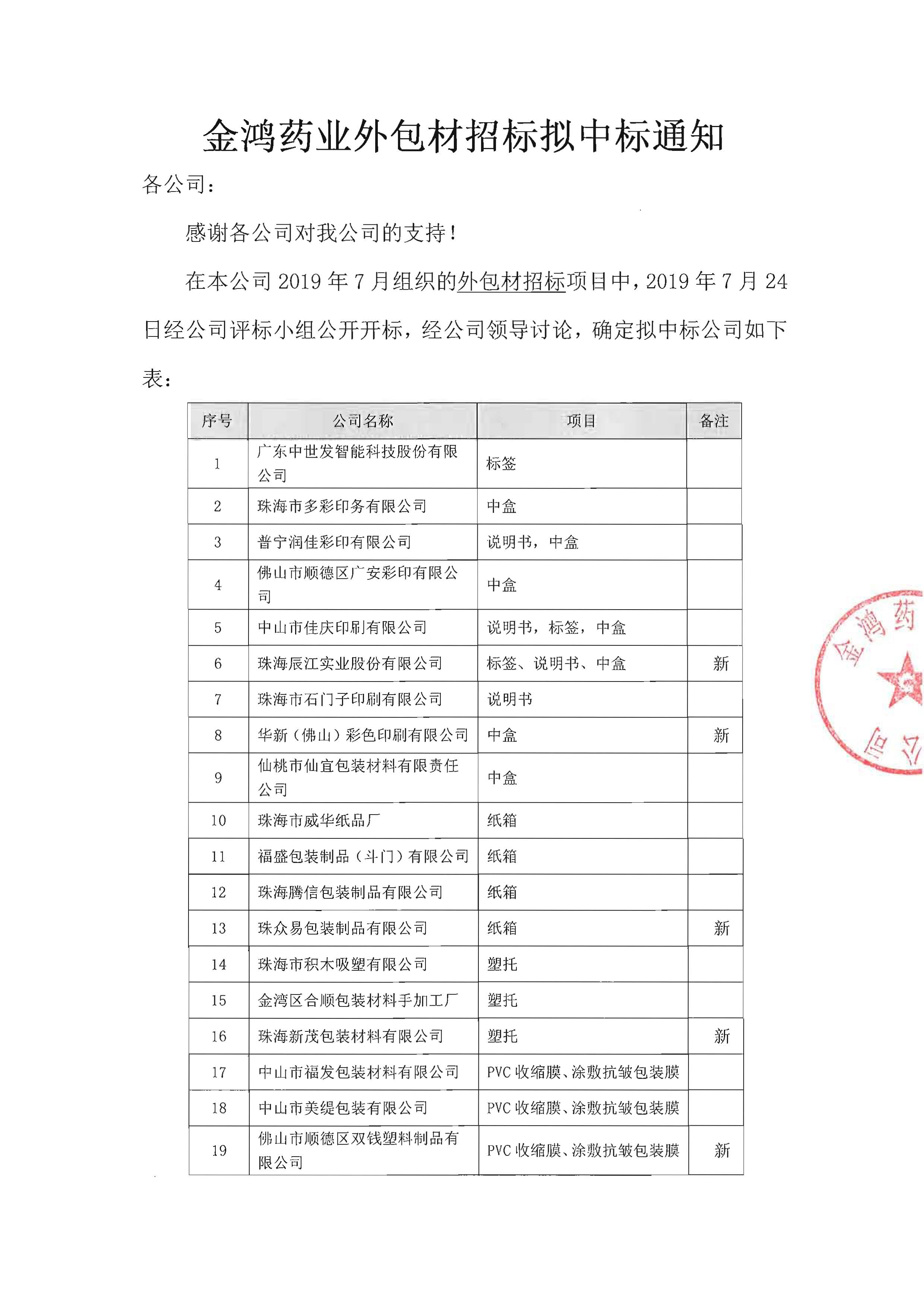 中文无码 外包材招标拟中标通知