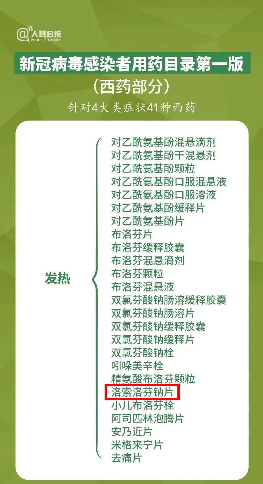 其中,洛索洛芬钠类制剂位列“西药部分”发热症状类。