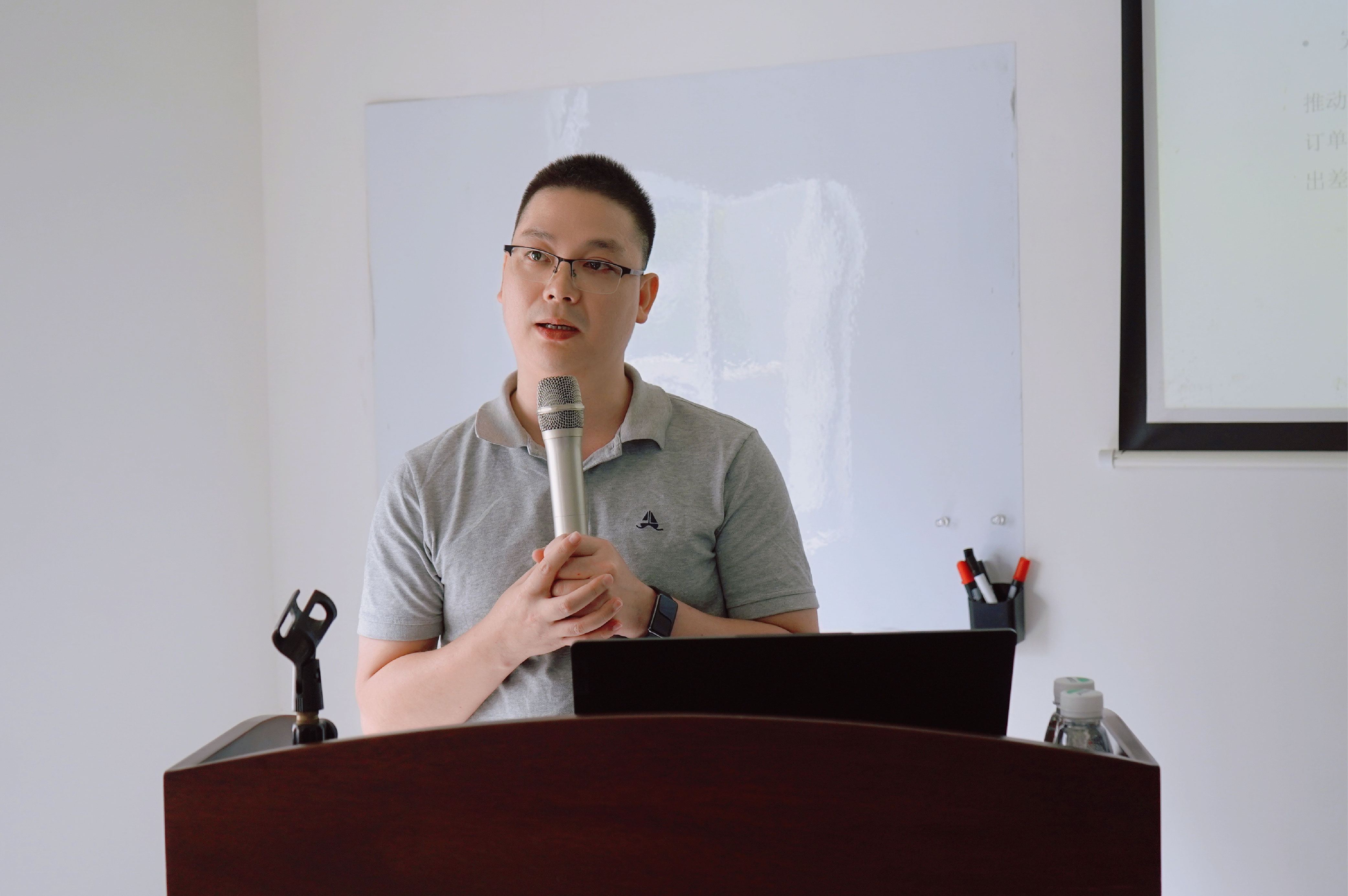 副总裁兼质量负责人、受权人杨志巧向大会汇报了上半年质量工作的基本运行情况,百分百完成了产品的入厂验收、过程控制、出厂检验等环节,做到质保合规、体系有效、配合及时,下半年将合规高效完成质管工作。