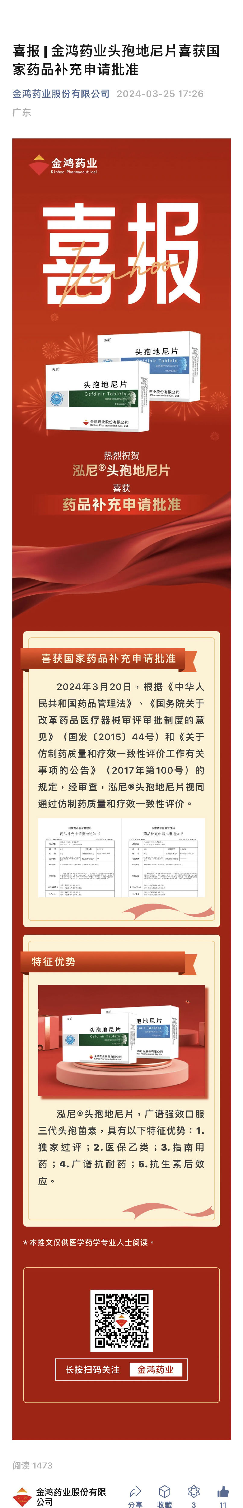 喜报 | 中文无码 头孢地尼片喜获国家药品补充申请批准